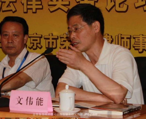 文伟能(总装备部政治部司法办公室主任):